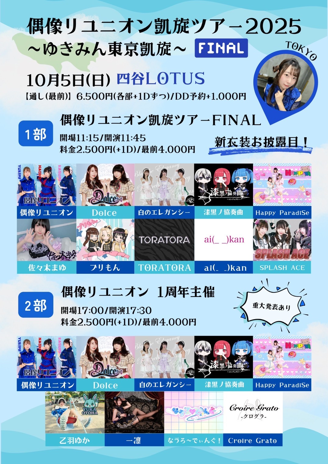 出演:偶像リユニオン /Dolce / 白のエレガンシー / 一凛 / なうろ〜でぃんぐ!/ 乙羽ゆか / Croire Grato-クログラ- / 漆黒ノ協奏曲〜コンチェルト〜 / Happy ParadiSe